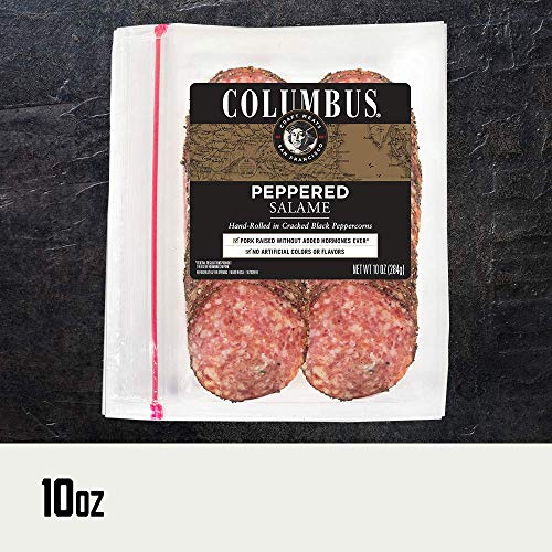 COLUMBUS Sliced Peppered Salame is our Italian Dry rolled in just the right amount of freshly cracked black peppercorns to give it a spicy bite followed by the true flavor of our original Salame. It is carefully slow aged to perfect its taste. Can be eaten alone, in a sandwich, salad or used for charcuterie. Pairs well with sharp cheddar, provolone, pepper jack or mahon. Enjoy it with a glass of pinot noir, Barolo, amber beer or pilsner. Pair it with accoutrements like roasted red peppers, hummus, peppadews or Spanish olives for the ultimate charcuterie experience. COLUMBUS is a trademark of Columbus Manufacturing, Inc. ©2021 Columbus Manufacturing, Inc. All images are owned by Columbus Manufacturing, Inc.