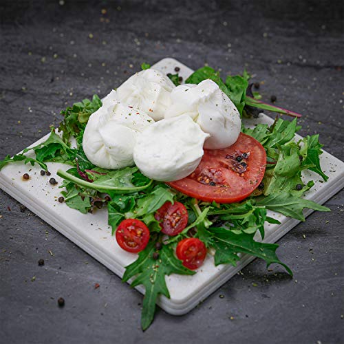 Our artisanal, fresh Italian Mozzarella Ovolini is made from cow’s milk rather than buffalo. It is smaller than the standard Mozzarella and is “Ovolini” or “egg-shaped”. Mozzarella Ovolini has a high moisture content, with a texture that is firmer and a flavor that is milder than buffalo mozzarella. It has a slightly off-white color. Nevertheless, it has a very creamy taste.